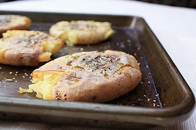 "Smashed" Ontario Potatoes dressed with Olive Oil, Kosher Salt and Fennel Seeds