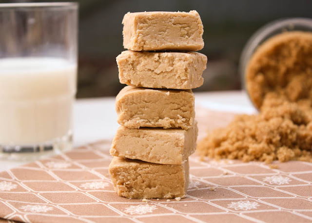 And the outcome? Well, I'll be honest it was not easy and at one point I thought I had ruined it by stirring for too long but in the end it came together beautifully. It was creamy and rich and had a lovely taffy flavour as I decided to make Penuche or Brown Sugar Fudge instead of the Vanilla Fudge the recipe called for.